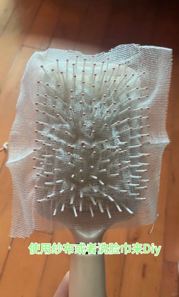 每次梳头发的时候都会掉下来几根,慢慢的堆积在梳子当中,特别是这种气囊手很难清理里面的头发,跟老妈学会了一周把用过的洗脸巾或者是家里的一次性滤网套在梳子上面,