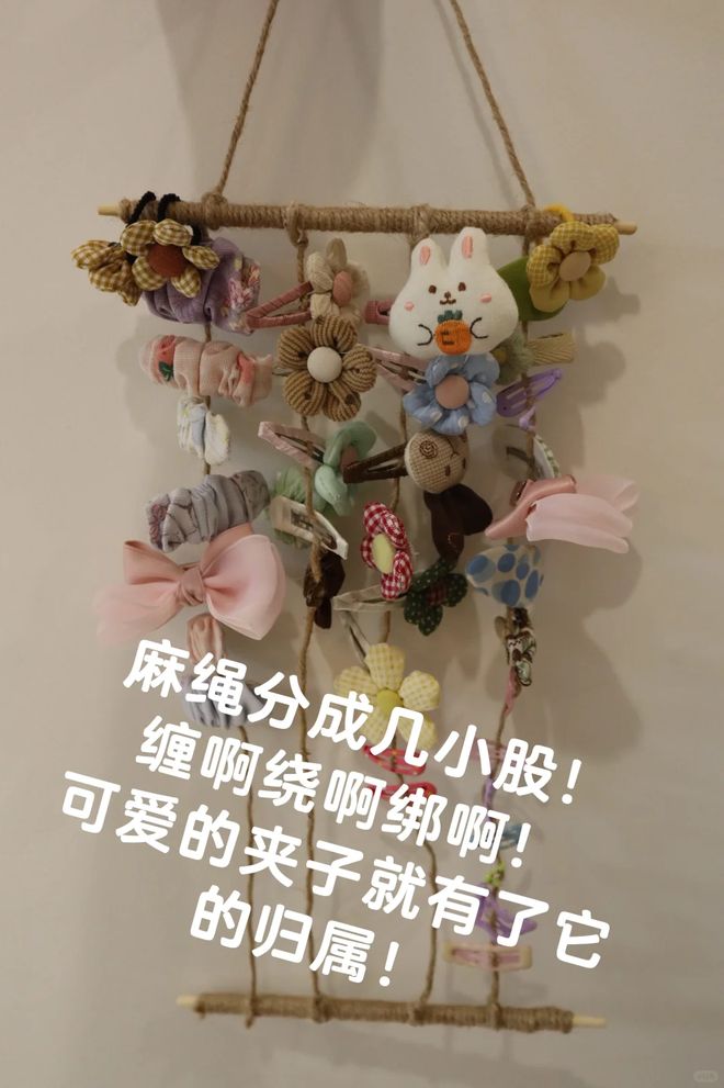 用一次性筷子和麻绳能够自制一个可以挂在墙上的收纳架收纳夹子发卡之类的小物件再也不用担心丢了,把一次性筷子分开,然后使用麻绳缠绕在上面,