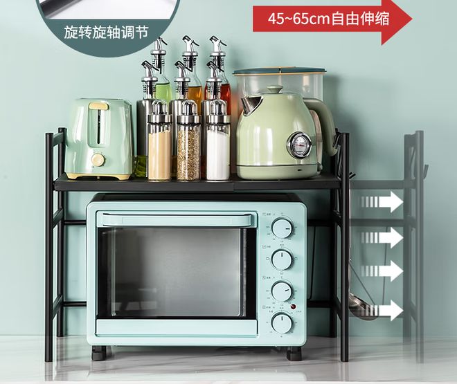 独特的设计理念,结合现代家居风格,既实用又时尚。可调节的高度,适应不同厨房需求,轻松放置微波炉,解放你的操作台。让你在烹饪时更加游刃有余,享受烹饪的乐趣。 高质量材料,稳固耐用,承重能力强,不用担心承载问题。无论是大厨还是新手,这款置物架都能成为你厨房的得力助手。再也不怕找不到调料,所有小物件都能井然有序!