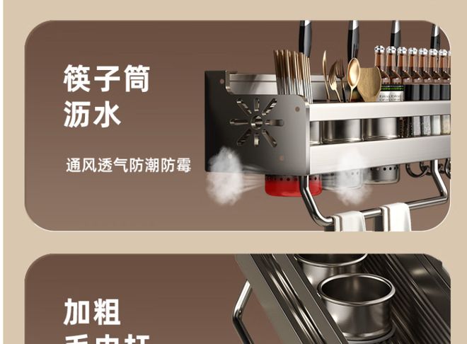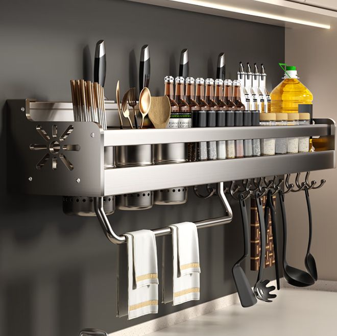 让厨房更整洁,慕馨(moosen)厨房置物架来啦!这款壁挂调料架集收纳、实用与美观于一体,完美解决了厨房空间不足的问题。它不仅能收纳调料,还能巧妙地挂刀、放筷子,省去杂乱无章的烦恼。